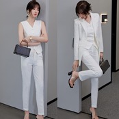 新品 韓流スター セットアップスーツ 白ジャケットパンツ ♥カワイイ♥♡ ホワイト ⦿韓国 オルチャン K-pop アイドル ジャケット スーツ ワンピース カーディガン ニット フーディー トレーナー キャミソール スカート シャツ ブラウス 6A0827277 | K Star Clothing