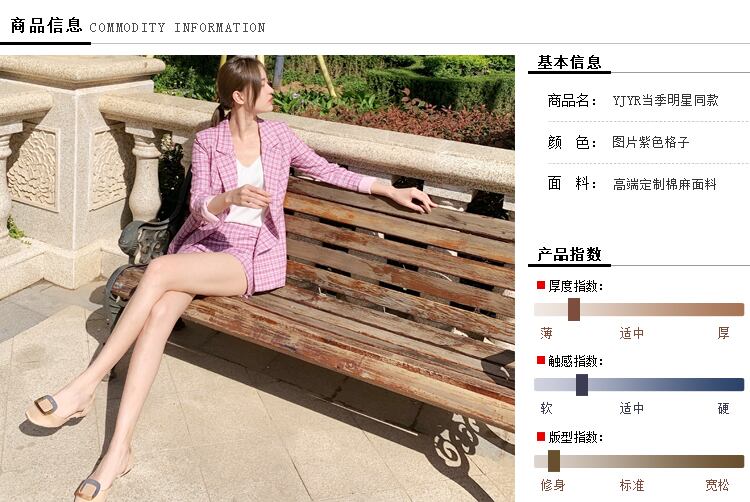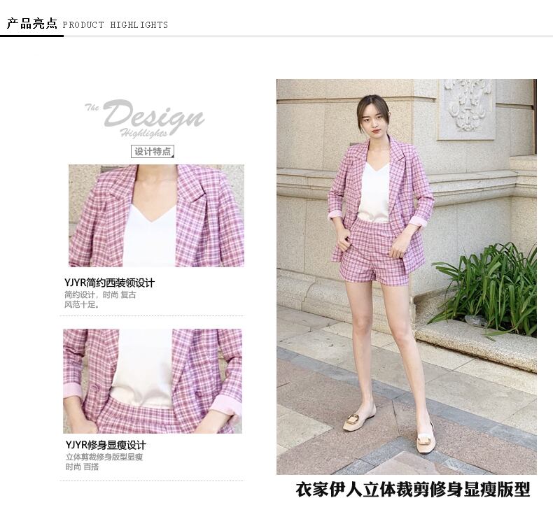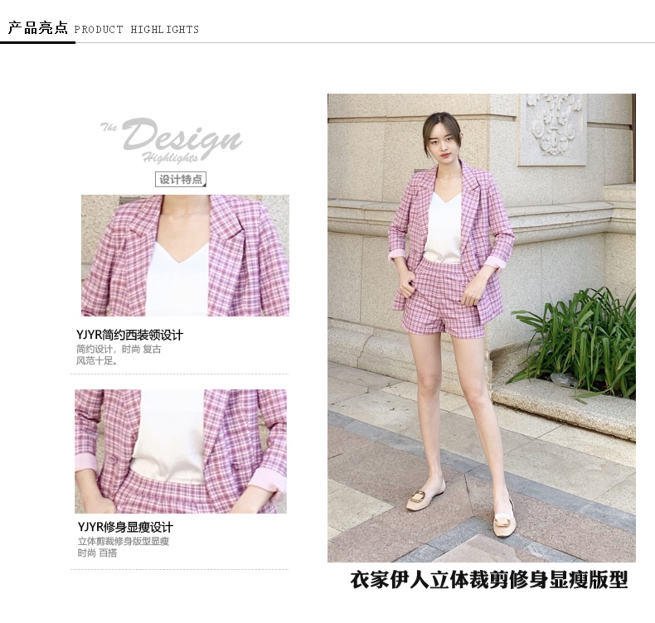 色:パープルチェックジャケット+ホワイトサスペンダー+ショーツ