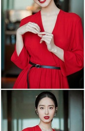 新品 韓流スター Vネックロングドレス ワンピース大人女子☆ ⦿韓国 オルチャン K-pop アイドル ジャケット スーツ ワンピース カーディガン ニット フーディー トレーナー キャミソール スカート シャツ ブラウス 6A8563905 | K Star Clothing