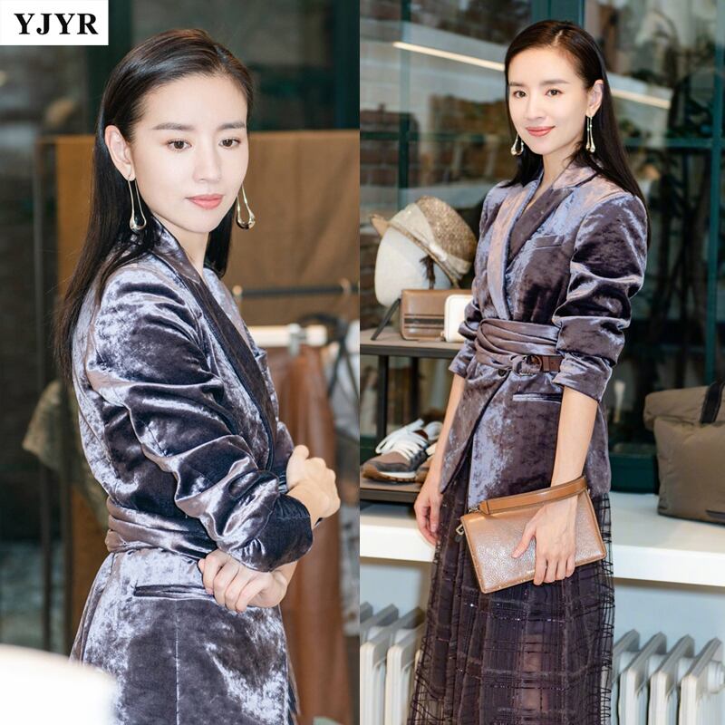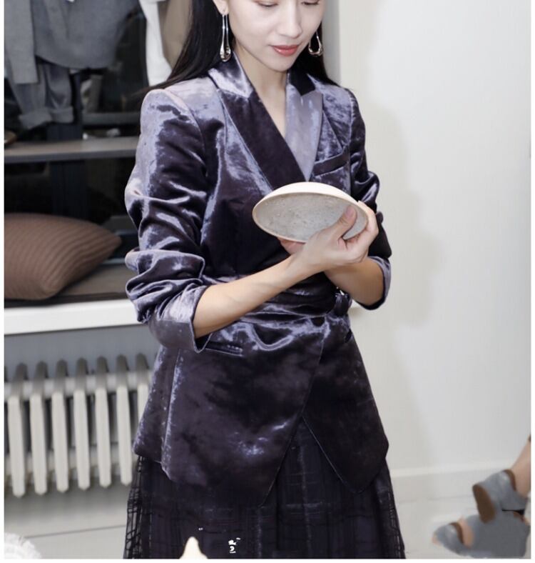 色:ベルト付きグレーパープルベルベットジャケット