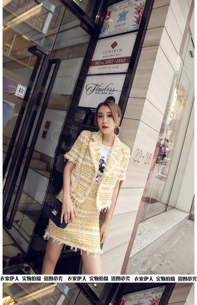 韓流スター イエローチェック柄ツィードハイウェストスカート 大人女子☆ ⦿韓国 オルチャン K-pop アイドル ジャケット スーツ ワンピース カーディガン ニット フーディー トレーナー キャミソール スカート シャツ ブラウス 6A1983093405 | K Star Clothing